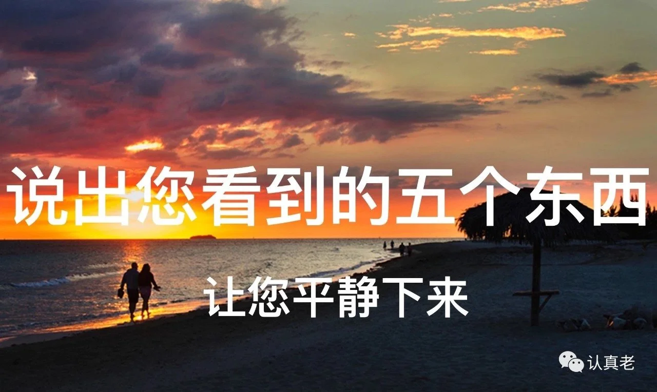 今天发生在我身上的一件事,让我感到焦躁烦恼,无法释怀,我想起了我这两年学到的一个“5-4-3-2-1” 的感官训练方法,等我耐心地做完这五步以后,我感到慢慢找回了平静。